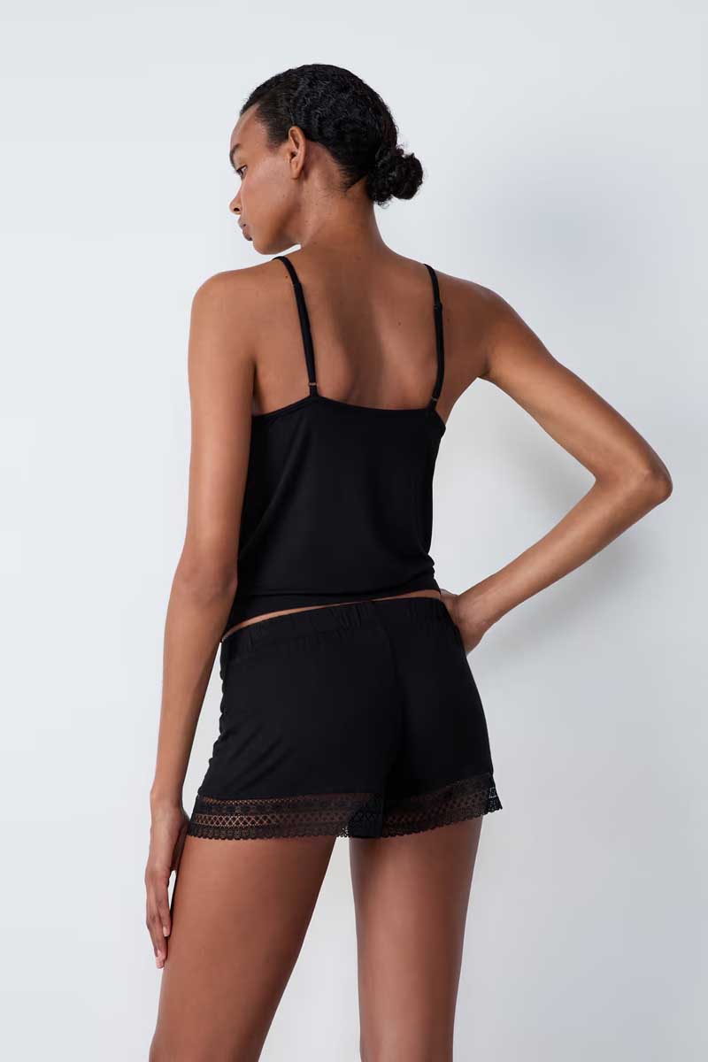 Elegance and delicacy… These pyjama shorts are adorned with fine lace and feature a slightly loose cut for comfortable and stylish nights.