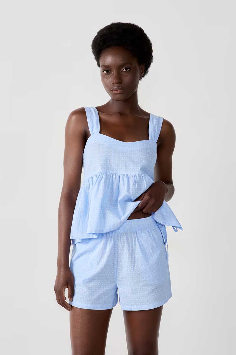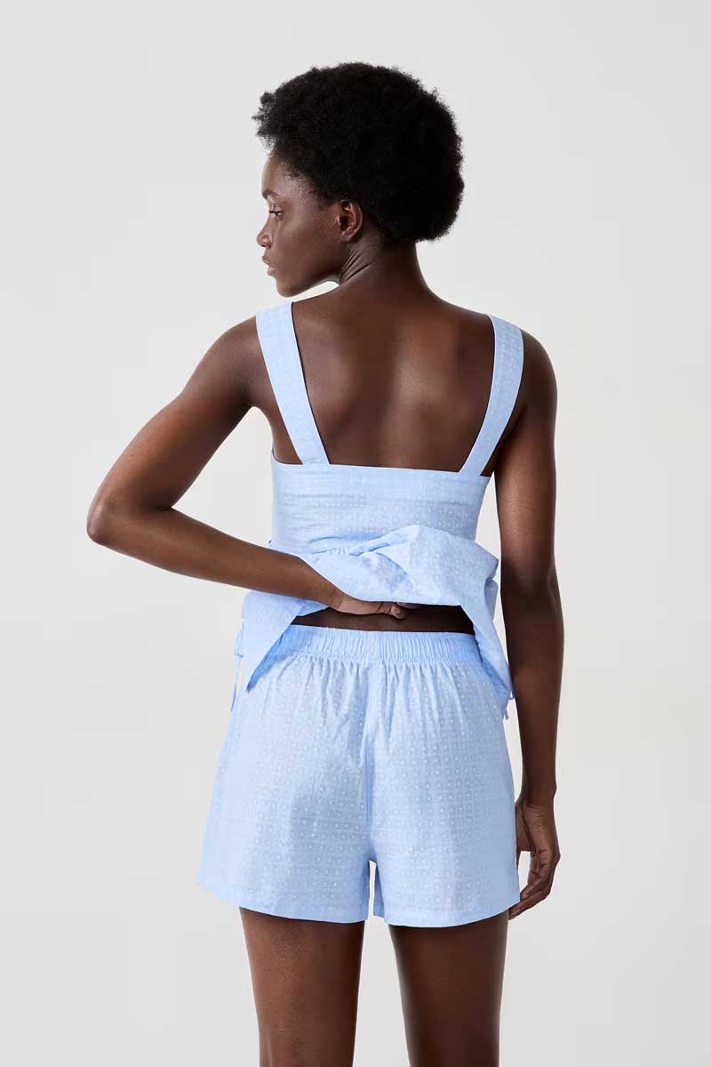 “With their light polka dot pattern and subtle side slits, these cotton shorts are all about elegance. They’re perfect for chilling out in the evening in style.”