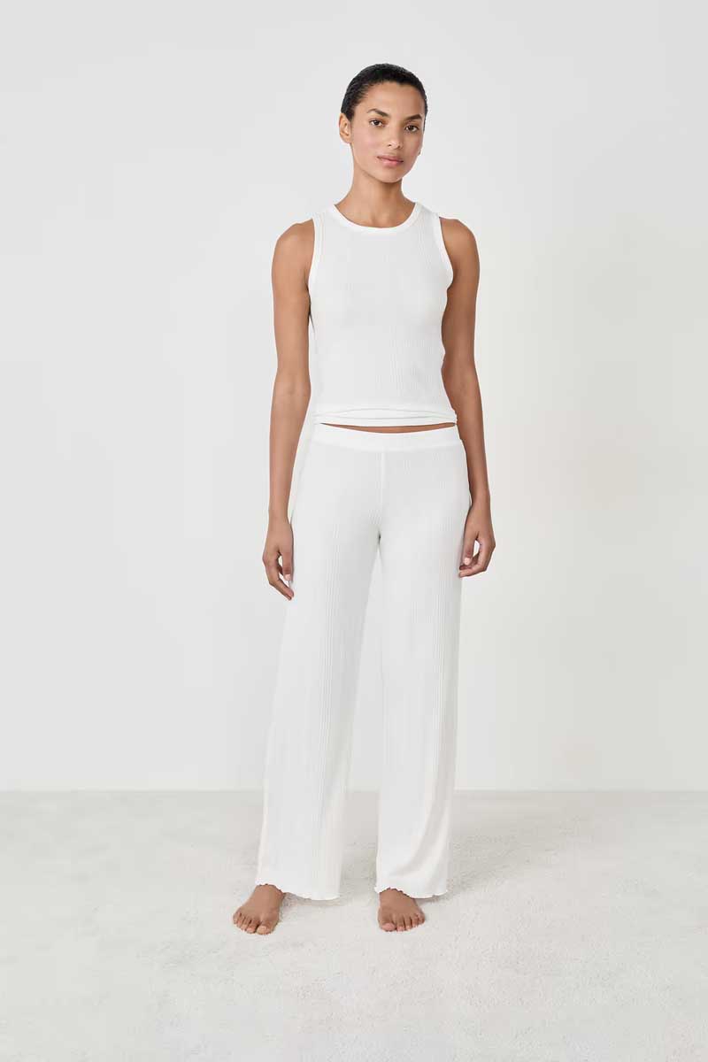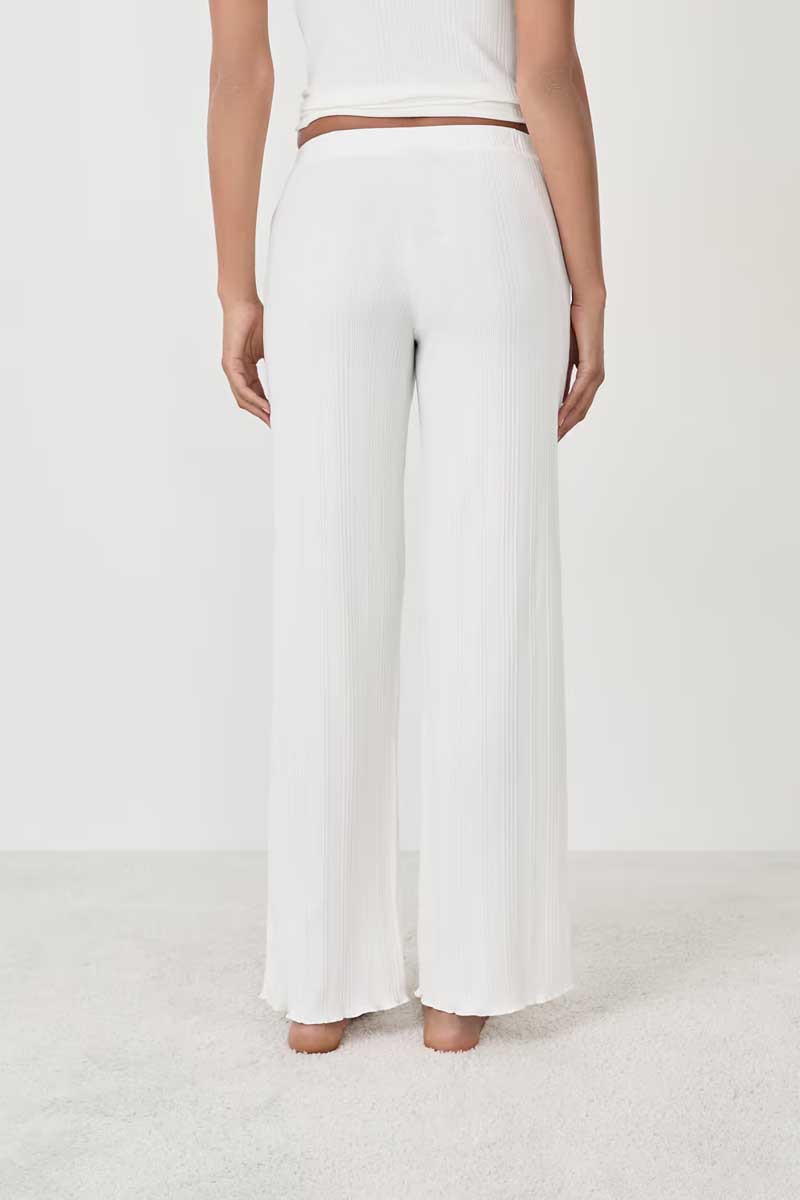 “Featuring an elasticated waistband, these pants delicately hug your curves and reveal a straight, flared cut.They create an elegant silhouette.”