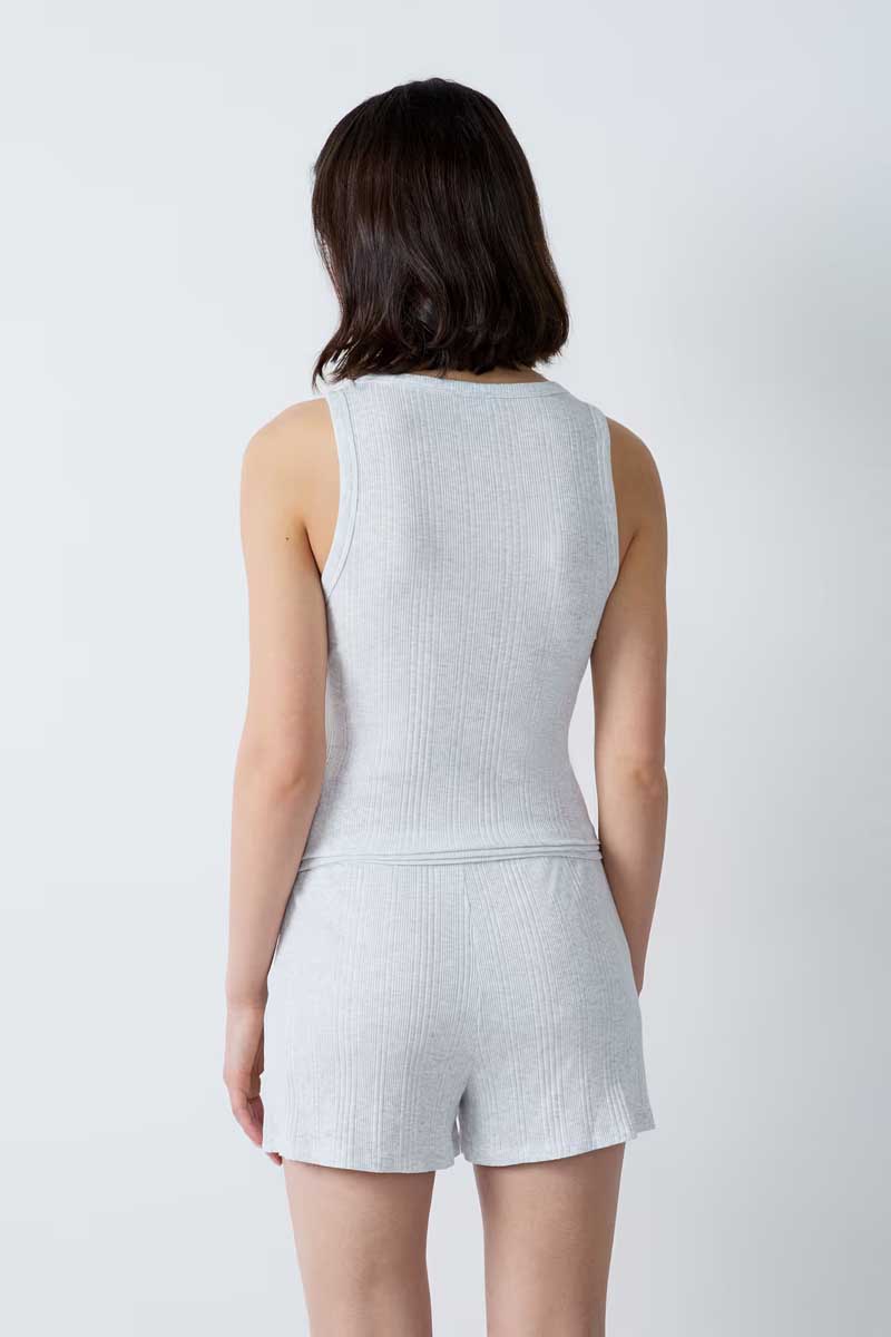 The ideal cotton tank top for everyday wear. With its soft ribbed knit and round neck, it’s a classic, chic and casual addition to your nightwear wardrobe. Add the matching pyjama shorts for a complete comfy look.