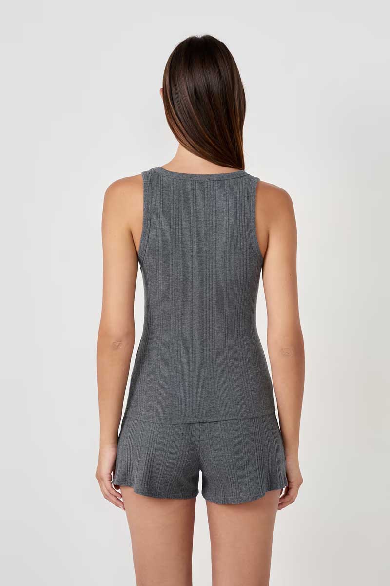 The ideal cotton tank top for everyday wear. With its soft ribbed knit and round neck, it’s a classic, chic and casual addition to your nightwear wardrobe. Add the matching pyjama shorts for a complete comfy look.