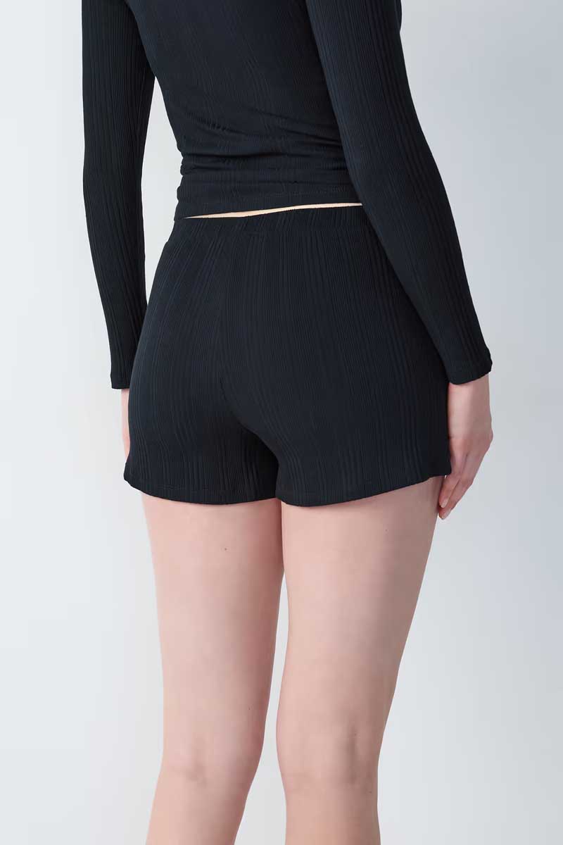 “A soft, delicately ribbed fabric for comfortable nights.These shorts feature an elasticated waistband and coordinate with the matching tank top.”