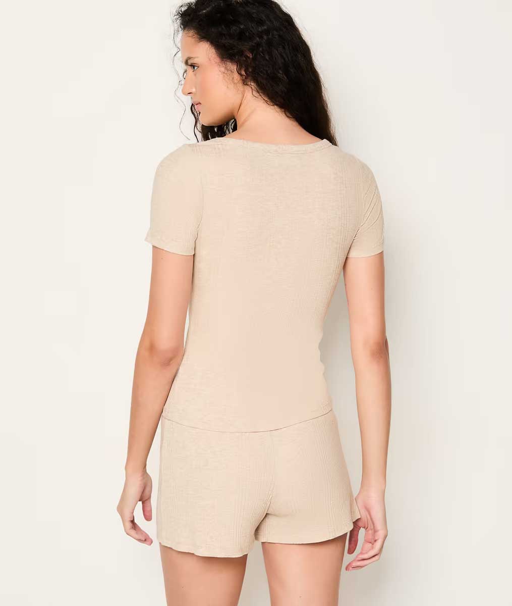 The ideal cotton t-shirt for everyday wear. With its soft ribbed knit, round neck and short sleeves, it’s a classic, chic and casual addition to your nightwear wardrobe. Add the matching pyjama shorts for a complete comfy look.