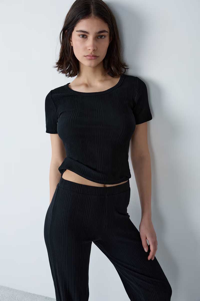 “The ideal cotton T-shirt for everyday wear. With its soft ribbed knit, round neck and short sleeves, it’s a classic, chic and casual addition to your nightwear wardrobe.Add the matching pyjama shorts for a complete comfy look.”