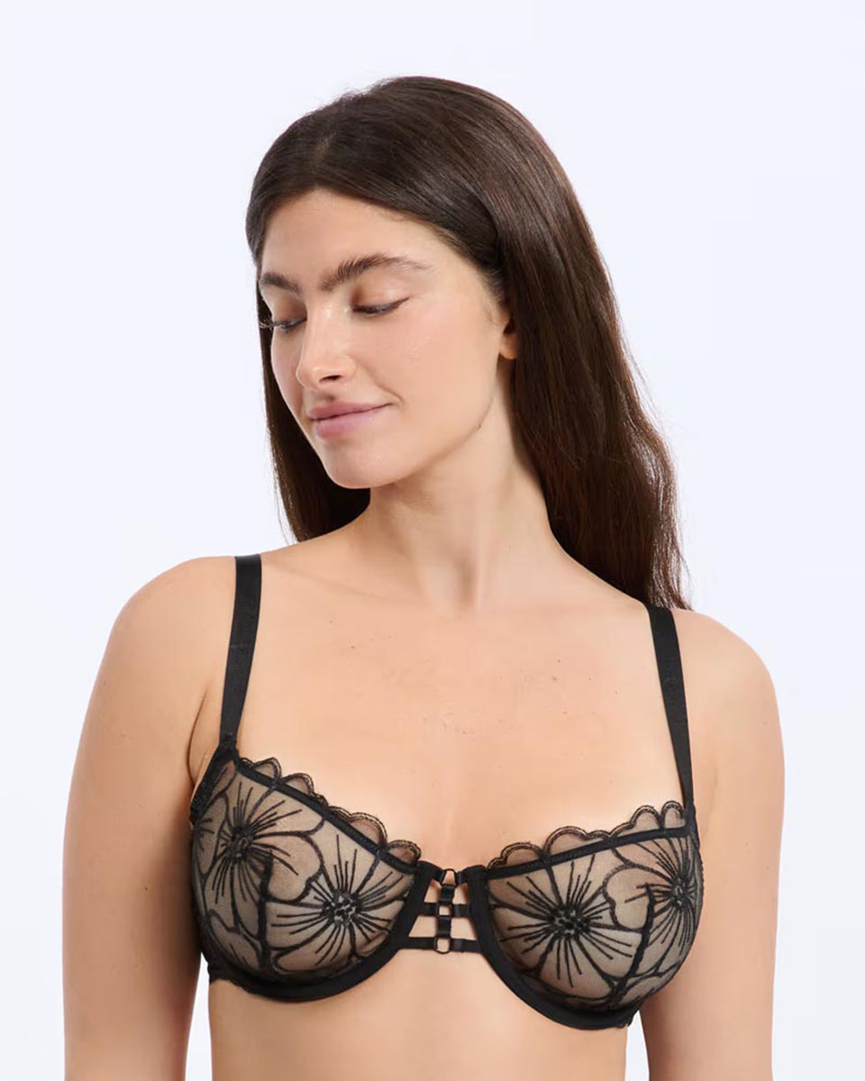 This balconette bra is adorned with floral embroidery and scalloped edges. Its shape ensures comfort and support.
