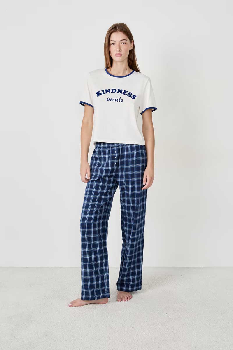 “Soft and comforting, these pajama pants are made of cotton. Their loose, flowing cut provides lightness and movement. They feature a checkered print and are enhanced by three delicate buttons under the waistband.”