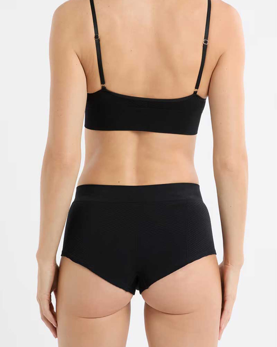 “Ultra-comfortable and stylish, the Etam studio unveils its new line of sportswear lingerie for everyday wear.Made from soft, textured, seamless fabric, these shorts feature a boyshort style. They have a ribbed waistband for optimal support and comfort.”