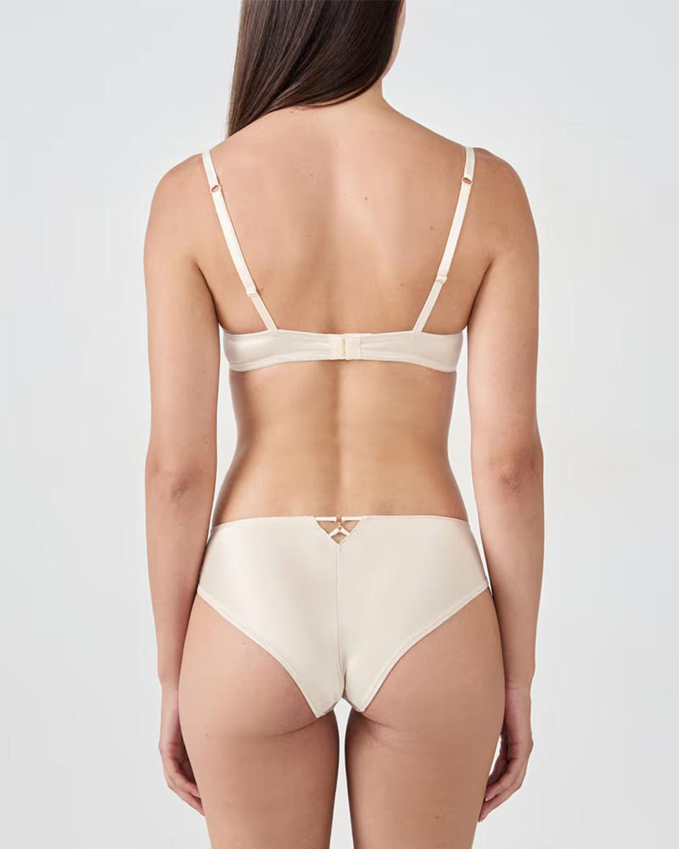 This hipster dress in tulle and satin microfiber features delicate embroidery and a slightly sequined scalloped edge.
