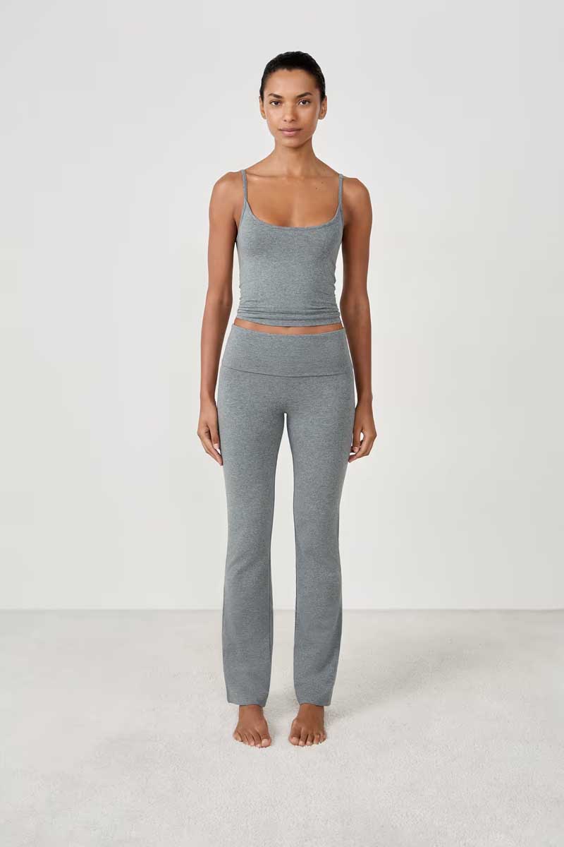 “Lightweight and flowing, these cotton and modal pants promise absolute comfort day and night. They feature a flared cut for a delicate drape.”