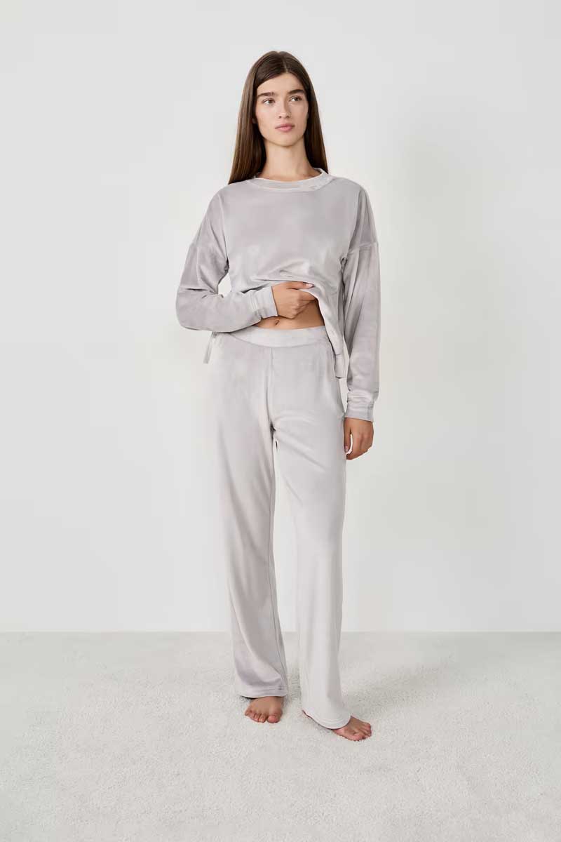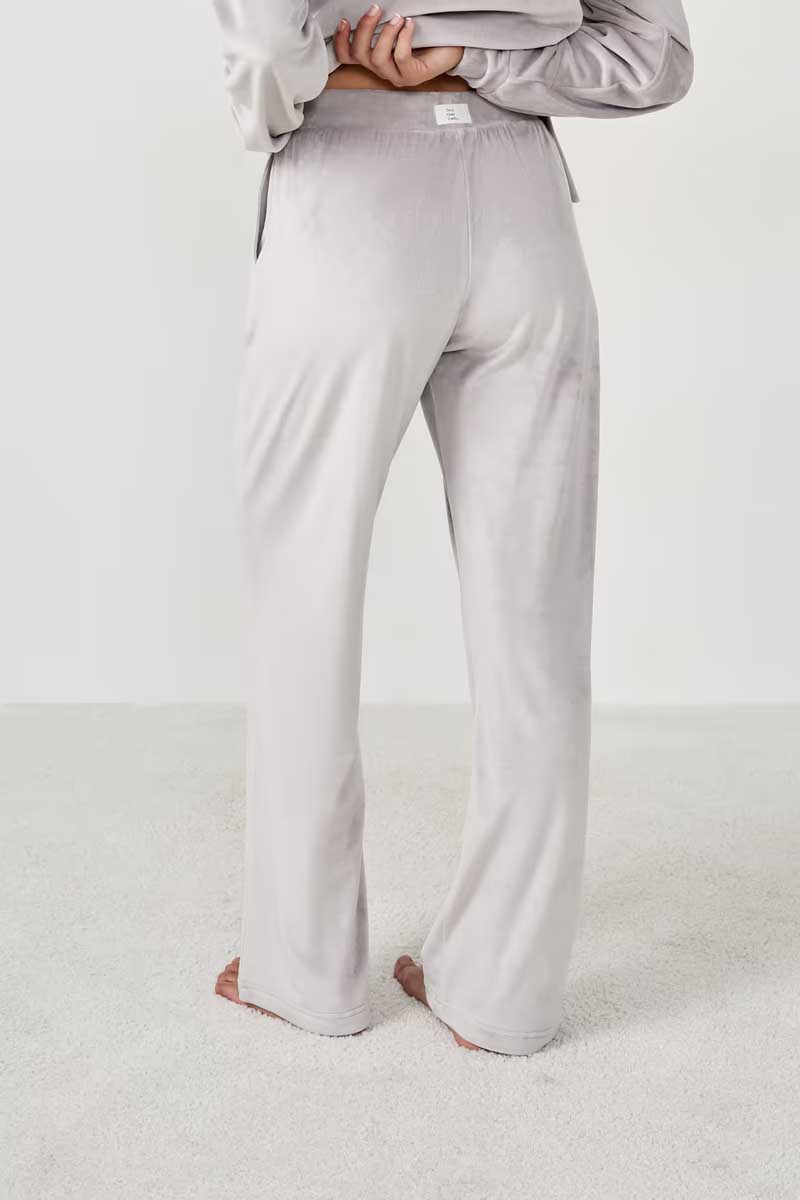 “Ideal for loungewear, these pajama pants feature a loose fit. Their velvet effect and elastic waistband ensure comfort and support every day.”