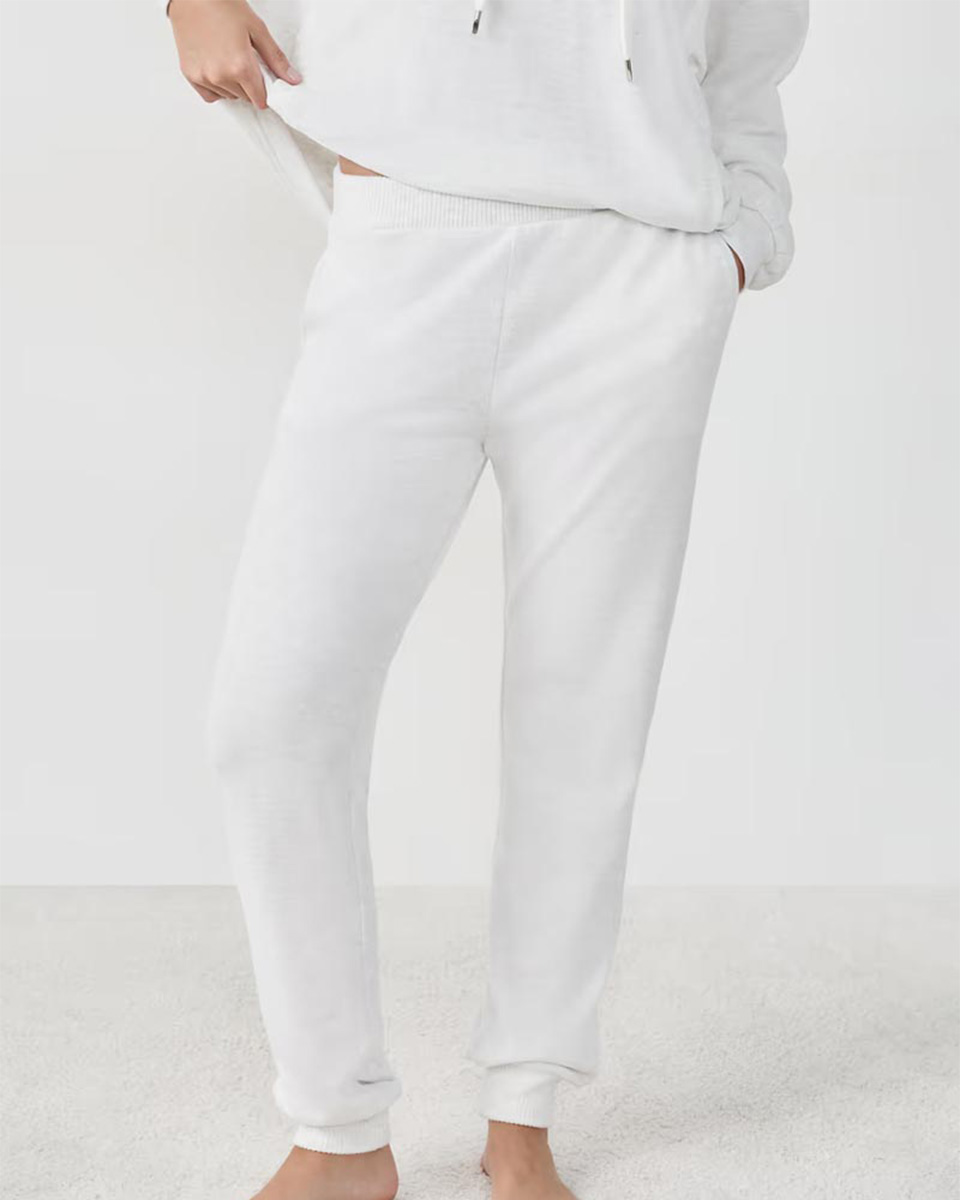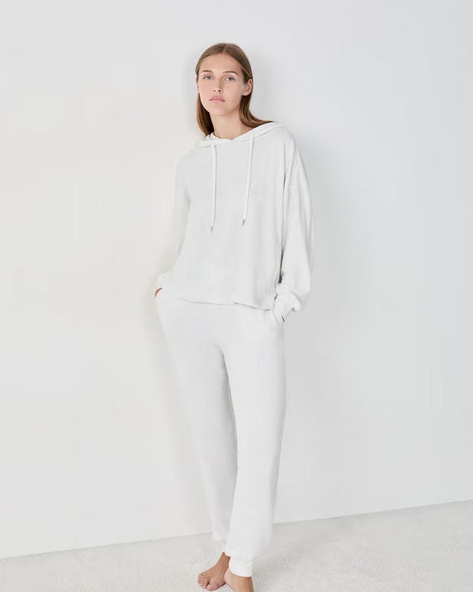 “Ideal for a comfortable and stylish look, these pyjama pants feature a modern jogger cut. The elasticated waist and tapered ankles create a relaxed silhouette.”