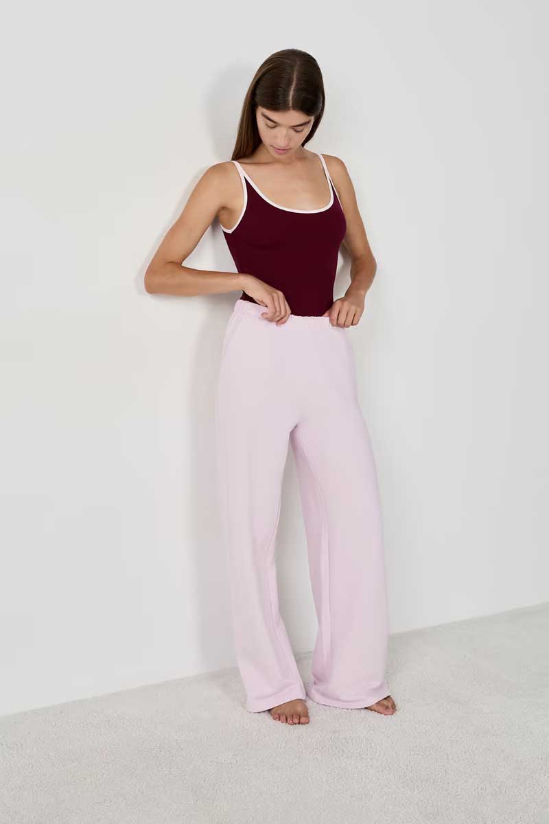 “Perfect for a comfortable and stylish look, these pajama pants feature a wide fit. They feature an elasticated waistband and a delicate flared fit for a relaxed silhouette.”