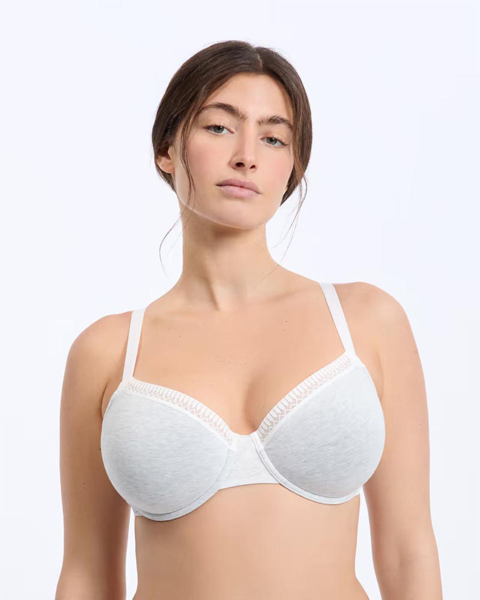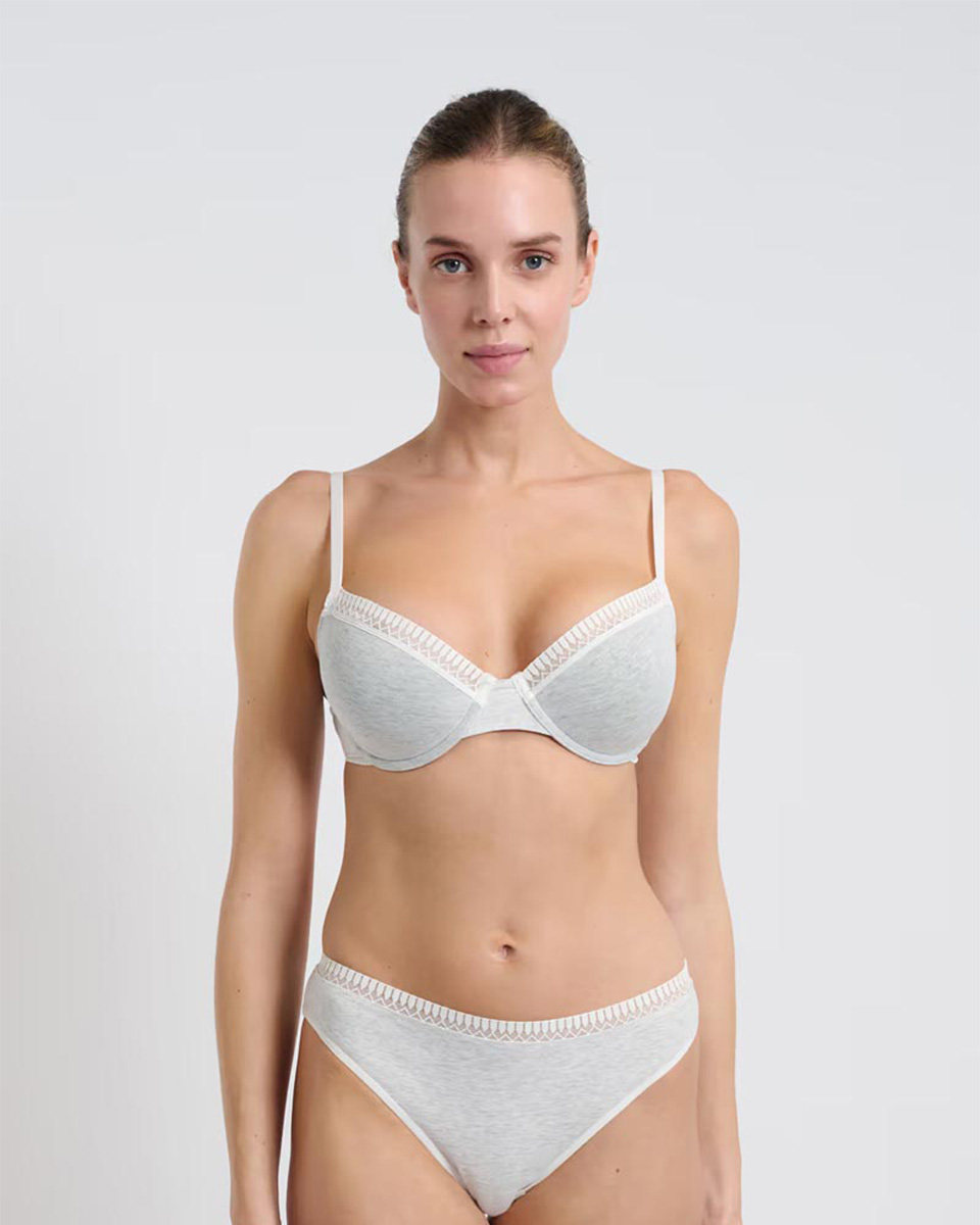 “UNDERBUST LACE : 77.00 % Polyamide, 23.00 % ElastaneCUP LINING : 100.00 % PolyesterSHELL FABRIC : 91.00 % Cotton, 9.00 % Elastane”