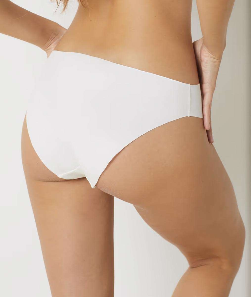 “Made from cotton and seamless, this brief promises comfort and total invisibility under all your outfits, even the boldest ones. It sensually hugs your curves. Available in a tone-on-tone colour range, it adapts to your skin tone.”