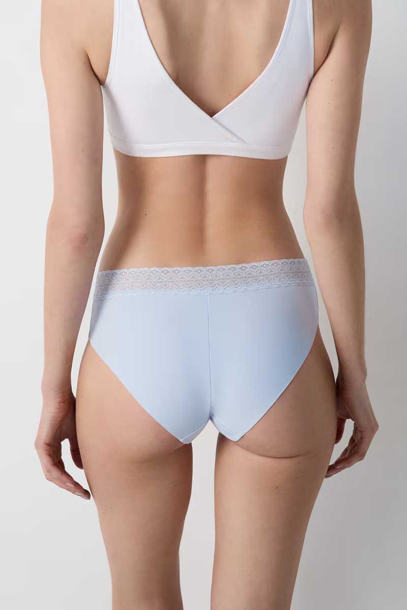“An ultra-soft cotton boyshort adornedwith a lace band at the waist: ideal for everyday wear.”