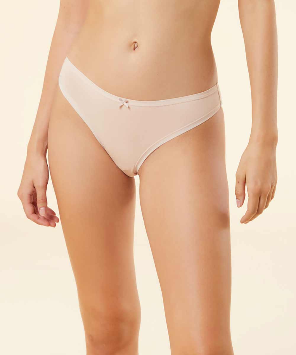 Shades of pink for these organic cotton bikini panties perfect for everyday life, for an optimal comfort. 3-pack bikini Bow tie detail Pink shades Three-pack Our model is 1.73m tall and is wearing a size S.