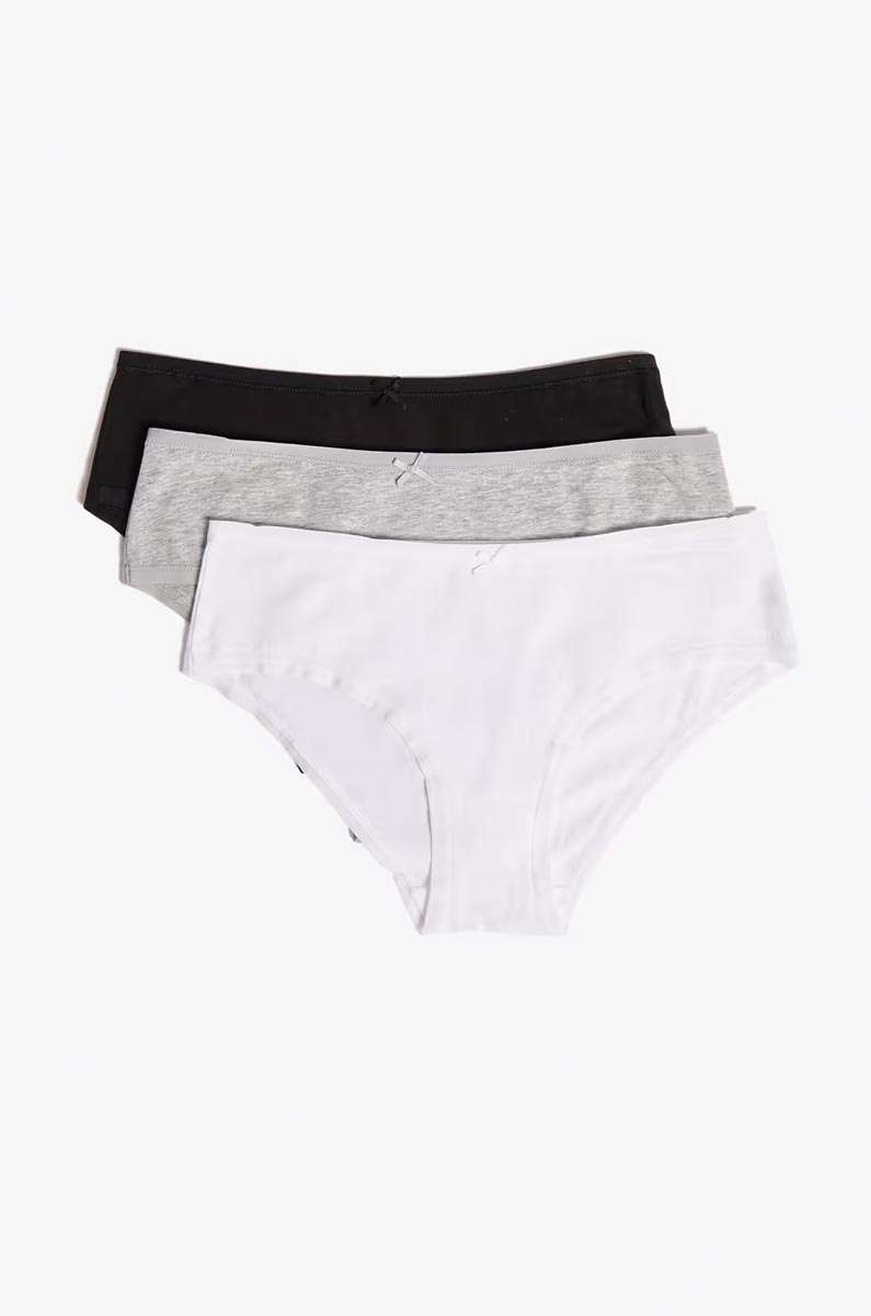 “Here are some new additions to your lingerie drawer! So comfortable, you’ll almost forget you’re wearing them… we bet you won’t want to take them off.ò Pack of 3 briefs ò WECAREbows The main fabric of this product contains 95% organic cotton. Organic cotton is grown without synthetic products (pesticides, herbicides, fertilizers) and without GMOs. The organic cotton in the WECARE program is certified by independent trusted labels, such as OCS or GOTS. Environmental and social criteria are imposed throughout the entire chain, from raw material to finished product. The partner factory has a recent social audit certificate from an independent certification body, guaranteeing decent working conditions. “
