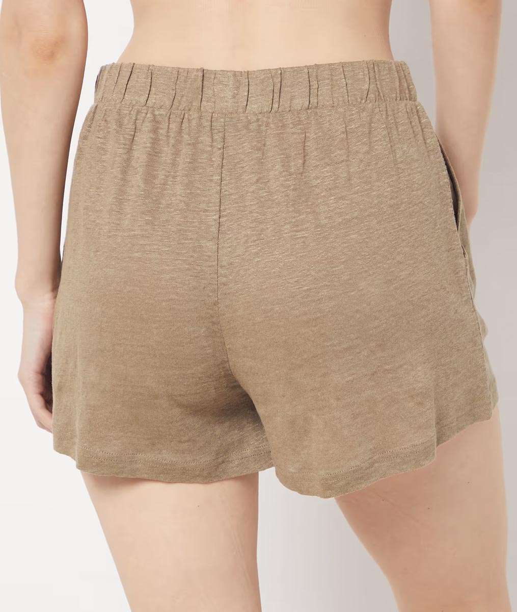 These pajama shorts feature an elastic band and lightweight linen material with ultra-comfortable pockets for a good night’s sleep.