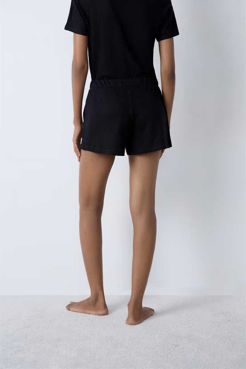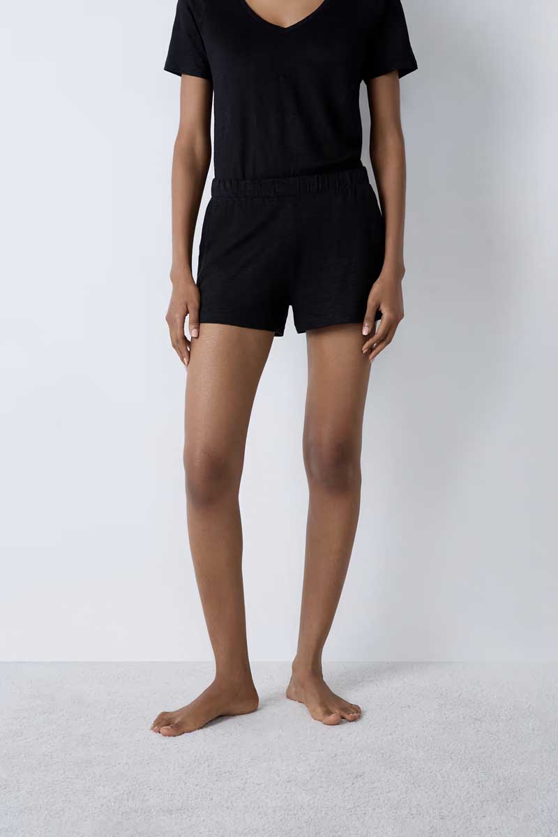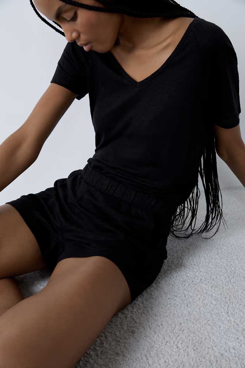 These pajama shorts, featuring an elasticated waistband, feature lightweight linen fabric with ultra-comfortable pockets for a good night’s sleep.