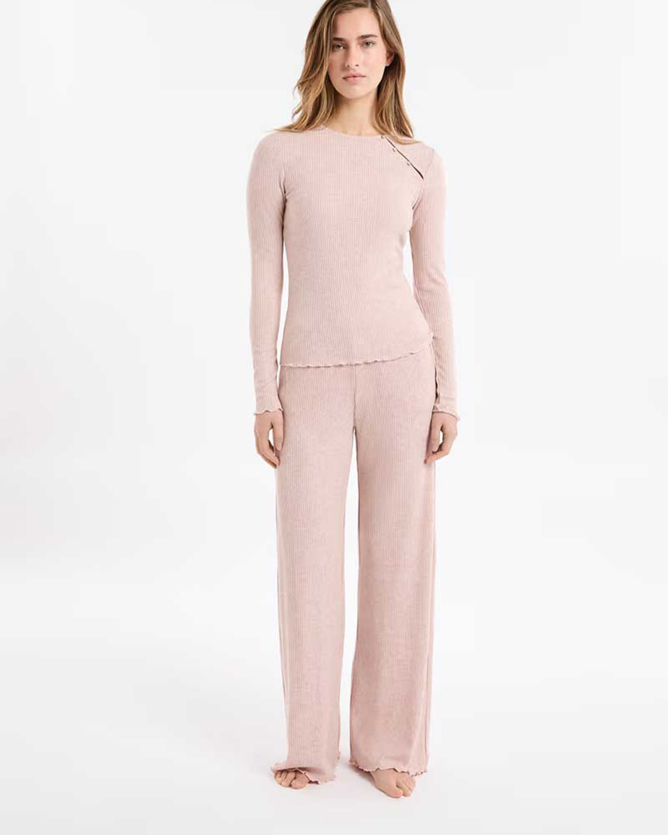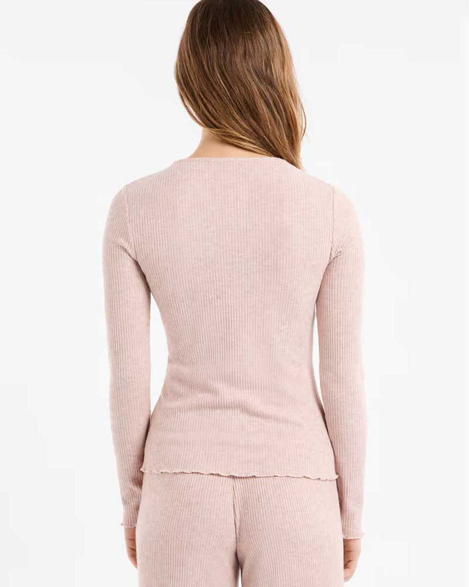 “Made from soft material, this long-sleeved t-shirt features a round neck. It is distinguished by a buttoned tab at the shoulder”