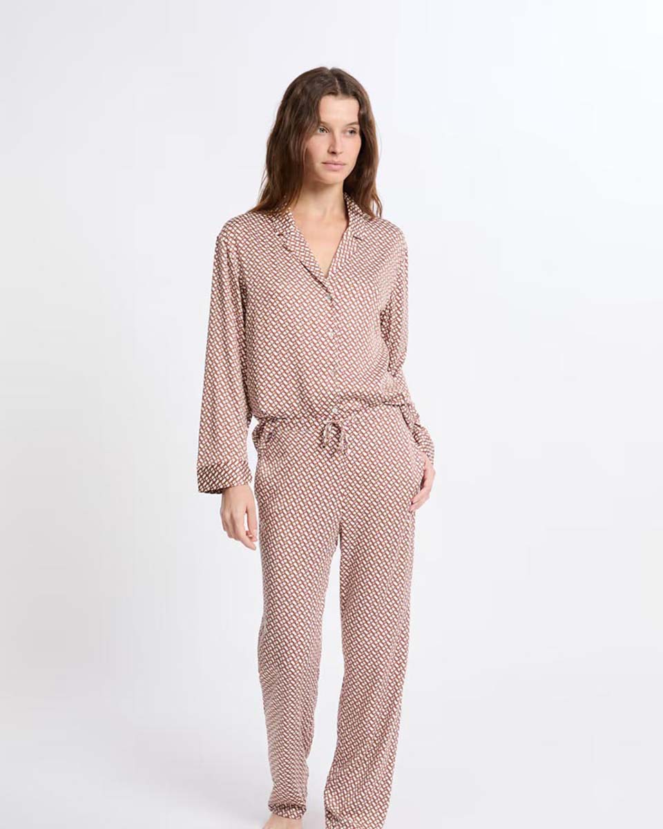 These pyjama trousers opt for a fluid cut and a graphic motif. They tie at the waist and pair with the matching shirt.
