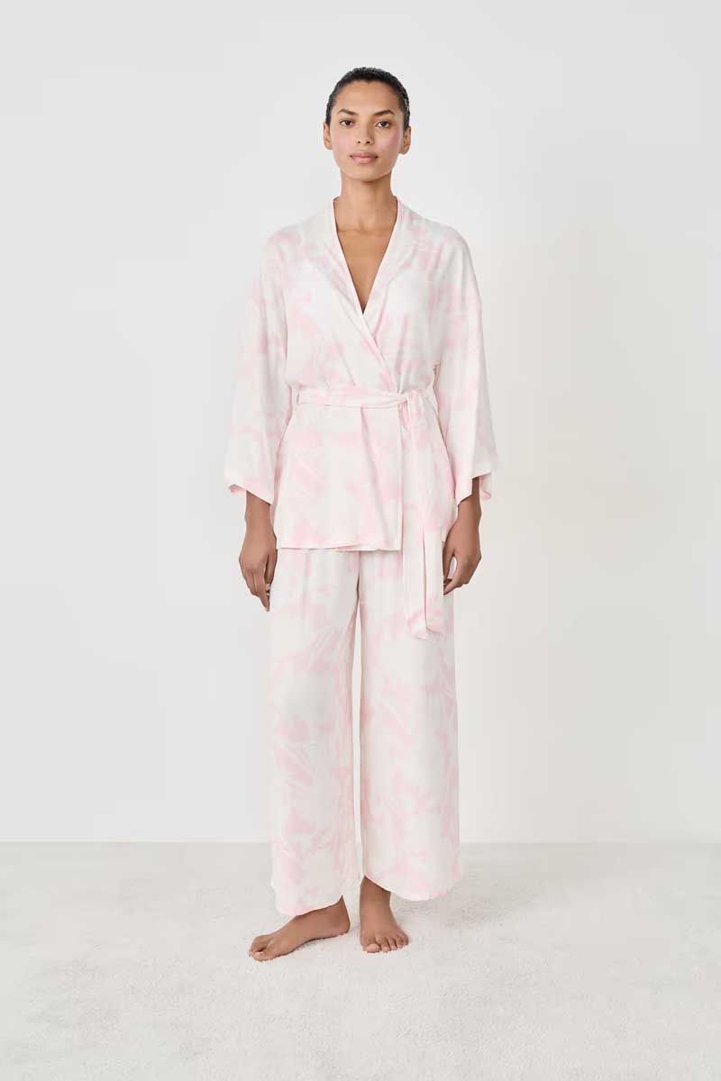 This satin-effect dress is all about elegance with its floral print. Its flowing cut promises a soft night’s sleep. It’s easily adjustable thanks to its loops and integrated belt.