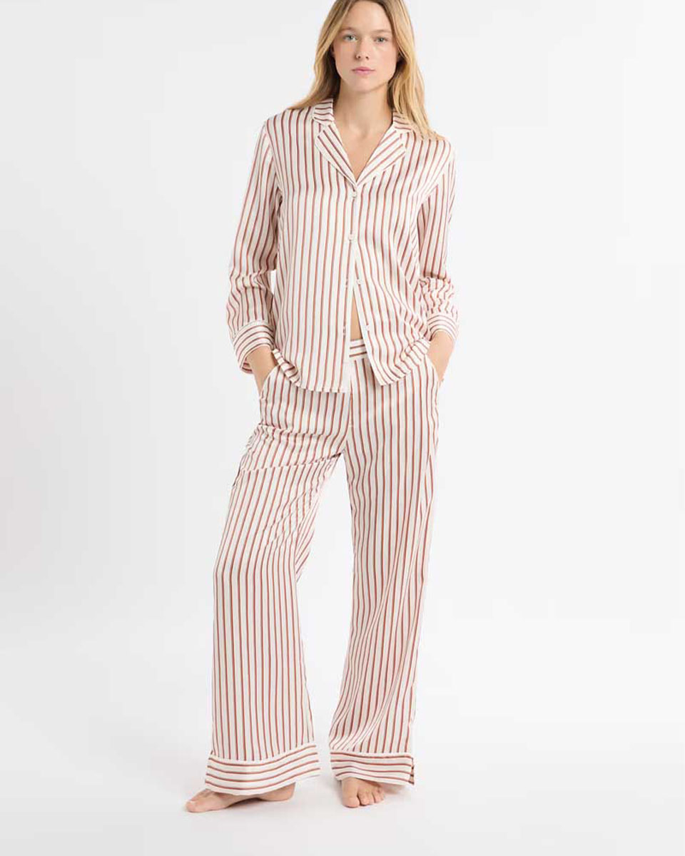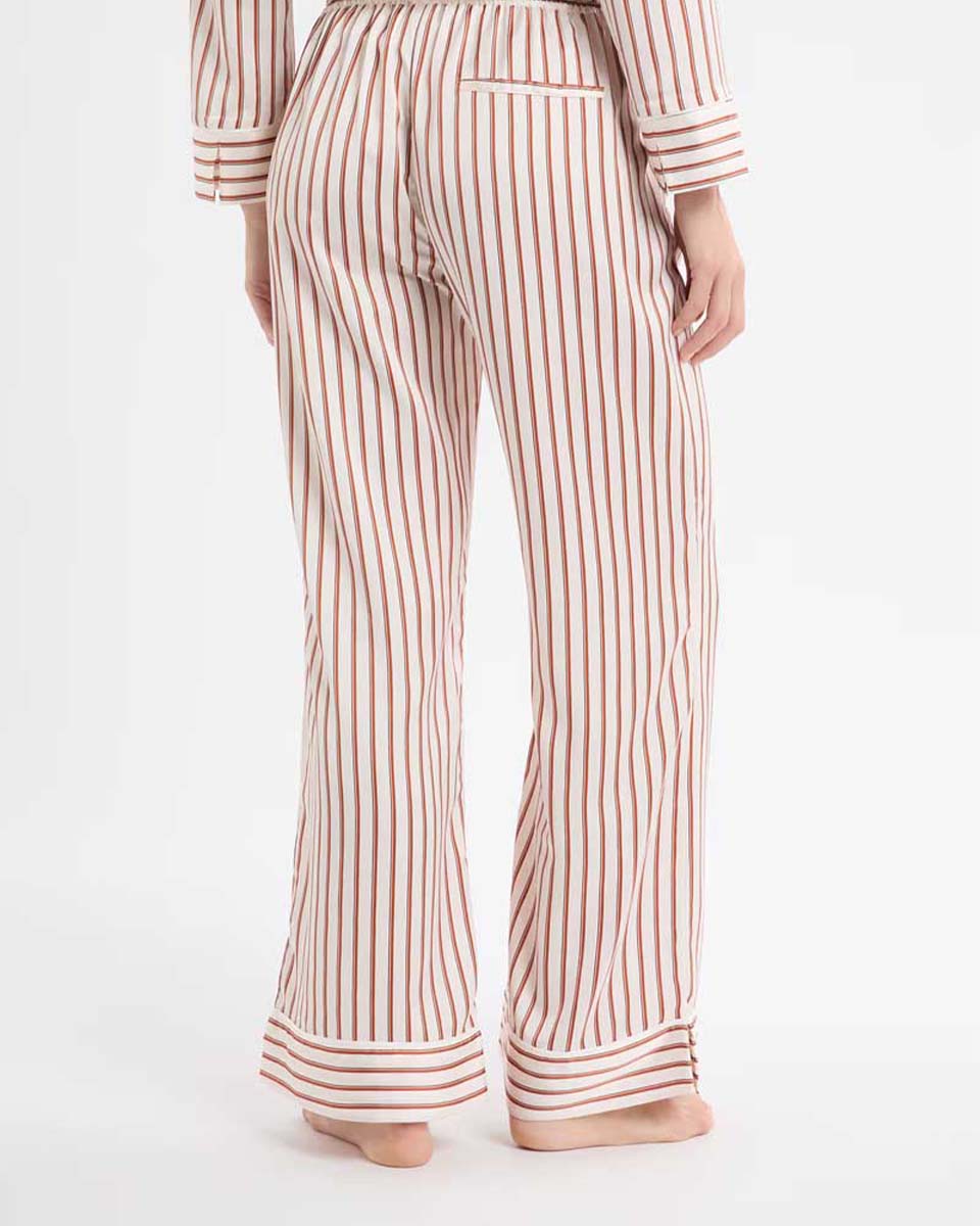 These fluid and lightweight pyjama pants feature a striped print. They have a satin finish and coordinate with the matching shirt.