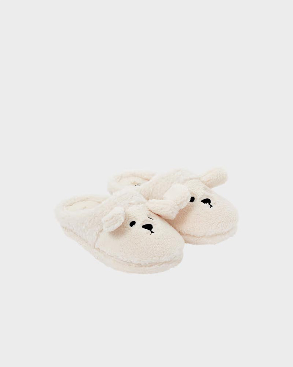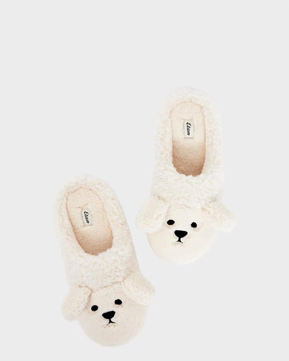 These faux fur mules are distinguished by their dog-shaped design.