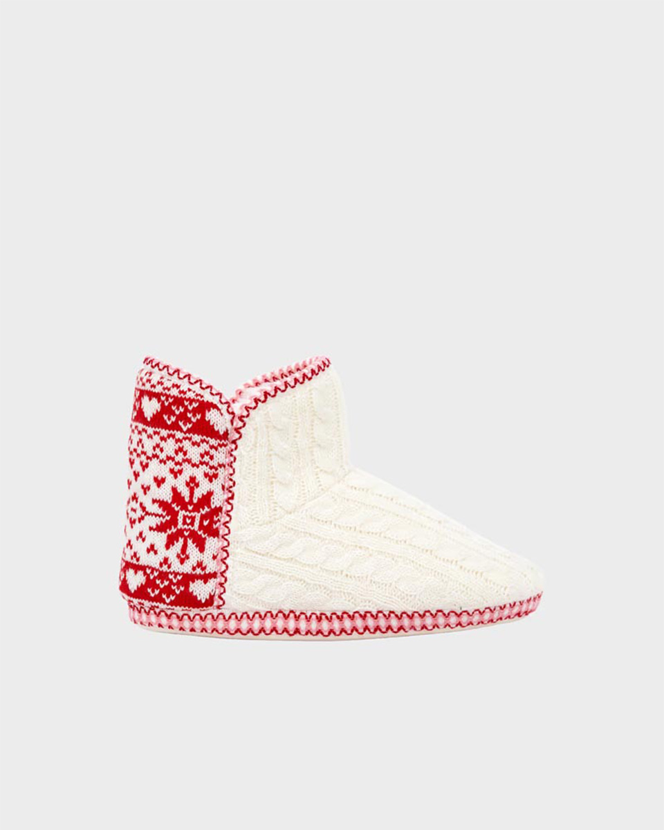“Ideal for staying warm, these ankle boots offer a braided effect and opt for a Christmas-themed print.”