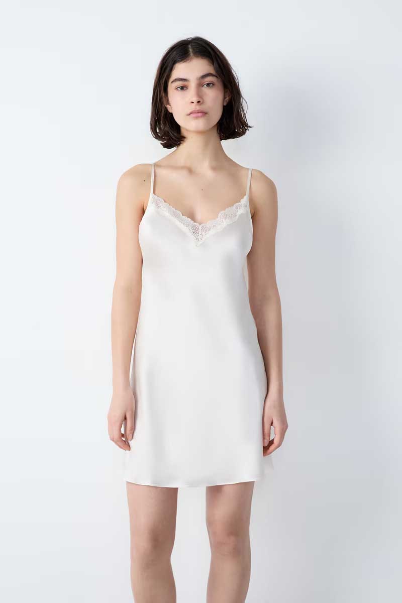 “A precious and infinitely soft material for very chic nights. Succumb to our 100% natural silk collection, with exceptional thermal properties: it retains warmth in winter and keeps you cool in summer.A divine nightdress enhanced with floral lace, to wear at night, but also during the day under a maxi knit cardigan.”