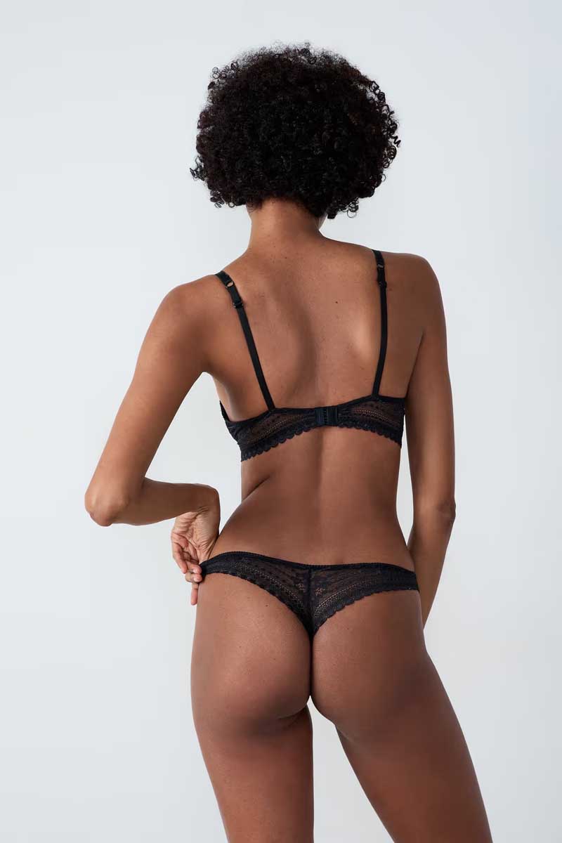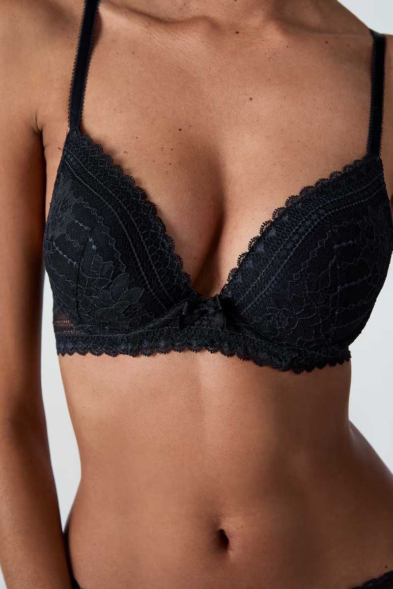 “1 size in the blink of an eye with this bra, which surrounds the neckline with delicately flowered lace. “