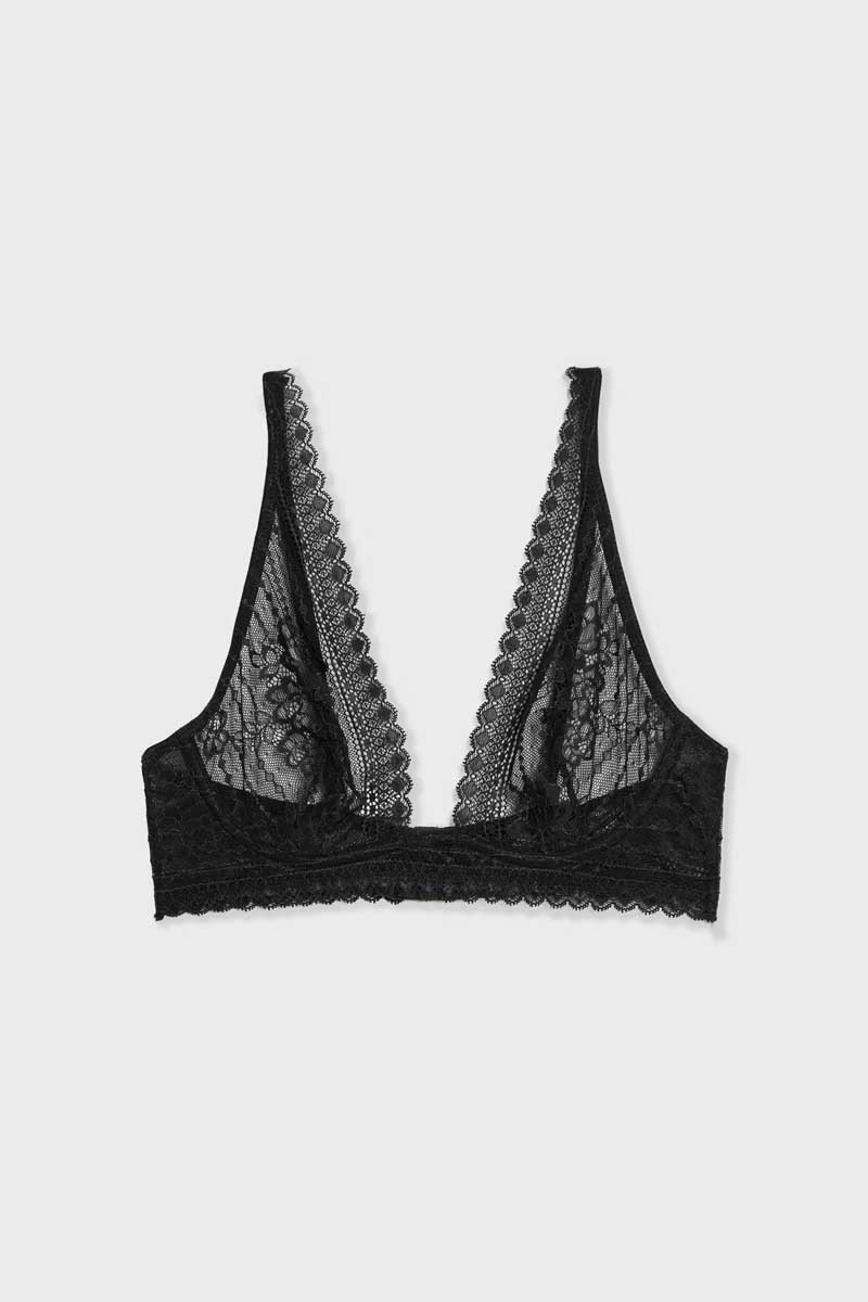 “A new ultra-light and comfortable shape for a sublime neckline: the underwired triangle makes a very remarkable entrance into our lingerie drawer. Its discreet and comfortable underwires offer excellent support, and the second-skin lace rises up to the shoulders.ò Braò Triangle Foulardò Unlinedò Underwiresò Adjustable strapsò Back hookThe model is 1.8m tall and wears size 9B.”