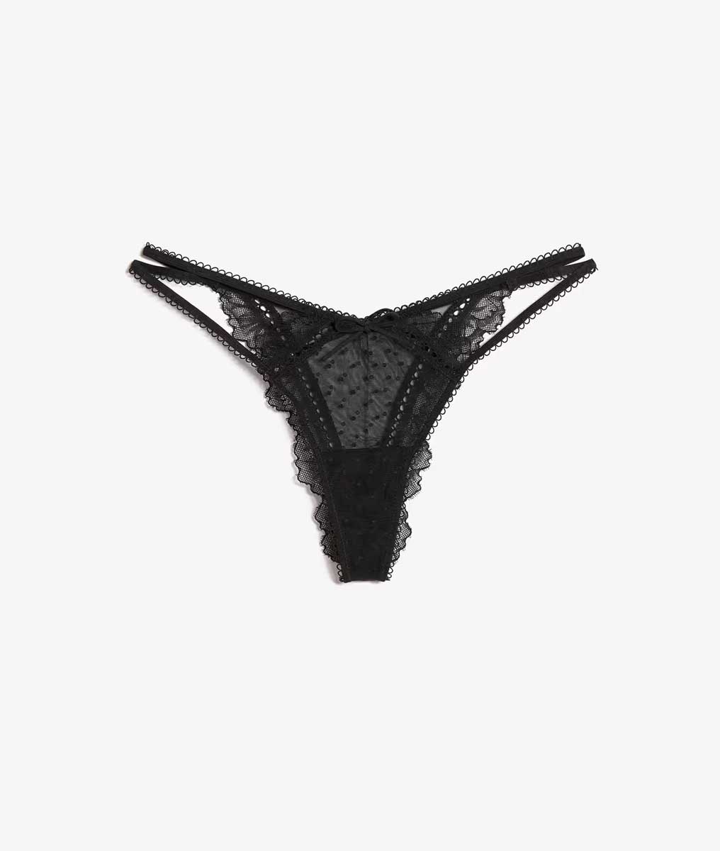 Sensual plumetis and play of cutouts: succumb to the sexiness of this daring thong.