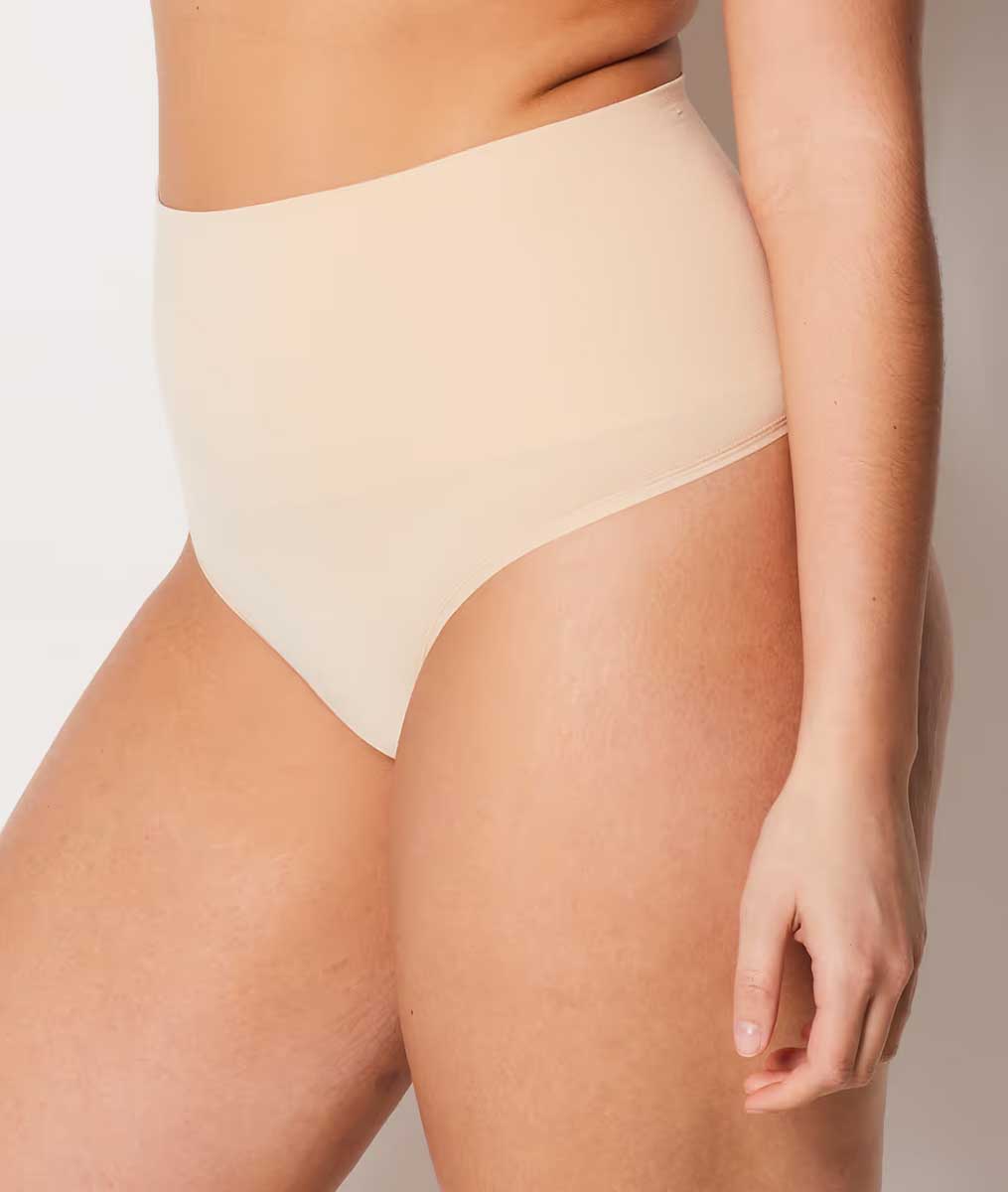 “Thanks to its seamless knitting technique for optimal comfort, this line will provide you with targeted reinforcement.Medium support for a guaranteed ôno feelö effect!ò High-waisted shaping thongò Seamless knitted microfiberò High waistò Medium supportò Slims the hips and waistò Targeted reinforcement at the waist”