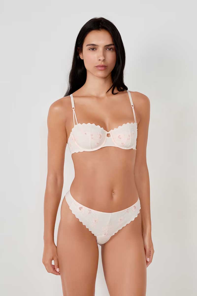 “FABRIC: 81.00% Polyester, 19.00% ElastaneBOTTOM LINING: 100.00% CottonEMBROIDERY: 95.00% Polyester, 5.00% Elastane”