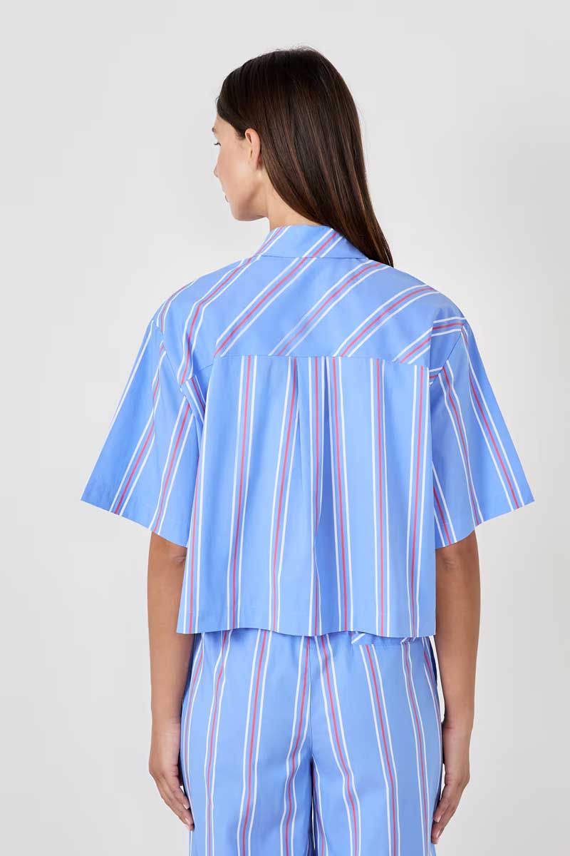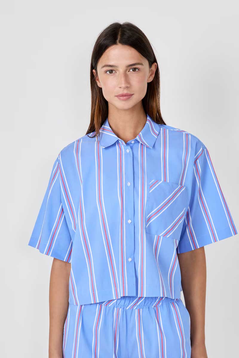 “Printed with contrasting stripes and featuring a flowing cut, this shirt is perfect for nights that are as soft as they are comfortable.”