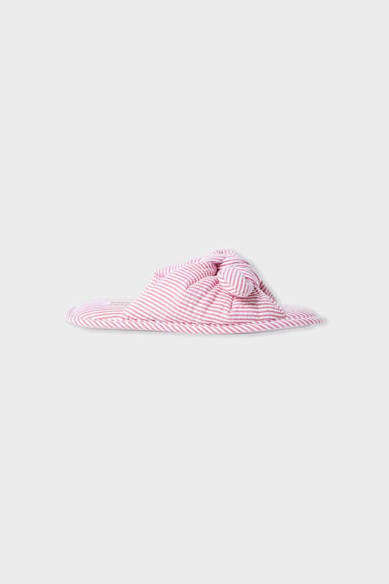 “With their straps and quilted material, these striped flip-flop slippers are very lightweight.”