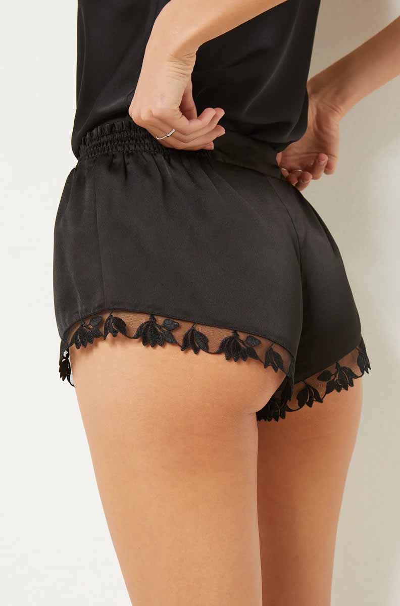 TENDERNESS Satin Pajama Shorts With Lace Details