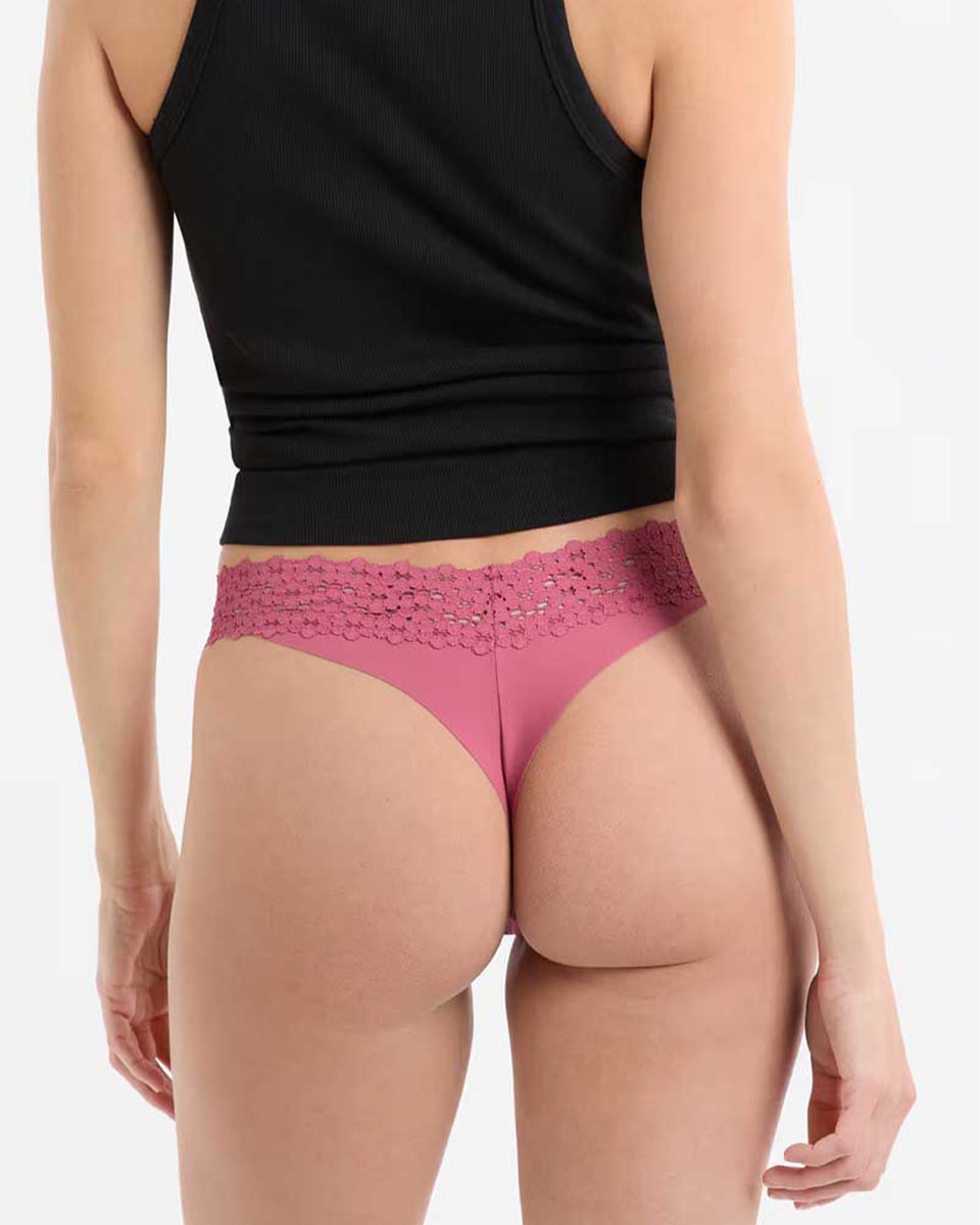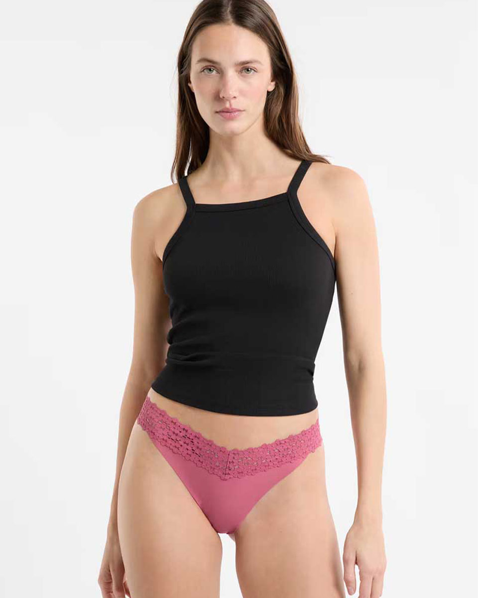 “With its low coverage shape, the tanga gives a lifted effect to all bottom shapes. We love this version delicately trimmed with lace.”